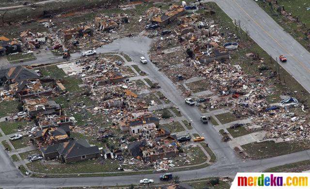 Foto Kota Joplin Rata Dengan Tanah Setelah Dihantam Badai ... . Tornado Muncul Dalam Banyak Ukuran Namun Umumnya Berbentuk Corong Kondensasi Yang Terlihat.